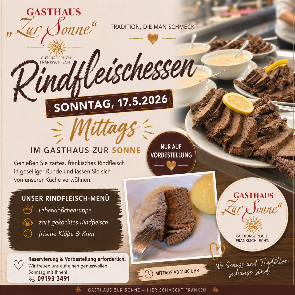 Am 17.05. Rindfleischessen – bitte rechtzeitig reservieren